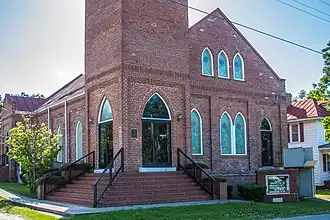 Mount Shiloh Missionary Baptist Church is a historic African-American Baptist church in New Bern, Craven County, North Carolina.[2] It was built in 1924, and is a one-story, rectangular brick church building on a raised basement in the Late Gothic Revival style. It features a tall projecting, corner tower. A two-story addition for Sunday School classrooms, a kitchen, and dining area was built in the 1970s.[3]