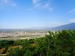 At the time there were to be 44 scenic areas, each containing one or more scenic spots, or scenic places within scenic areas.[24] Songshan was placed in the national category. In 1986 it received a Master Plan formulated by Tongji University, which was ratified in 1990 by the State Council of the People's Republic of China. Shaolin Monastery was featured as a scenic spot. Funds were allocated to restore it (It had burned down in 1928).[26] Other scenic spots are Songyang Academy, Zhongyue Temple, Star Observatory, Daxiongshan Xianren Valley, Fanjia Gate, and Zhaixing Tower.[27] This scenic area was not the whole range. Shaped like bean, its concave side faces the south. Shaoshi and Taishi are the masses on the side, as far as they go. The valley is not included, as it was already urban Dengfeng.