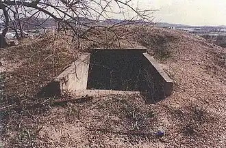 No.2 Station was Townsville's largest and most modern anti-aircraft battery when completed. Hardly a mountain, more a small hill, the site included four concrete ammunition bunkers, four 3.7" guns of the latest design, and an underground command post and plotting room. The standard (static) HAA gun position used in Queensland during World War II had four hexagonal gun positions, with a semi-underground command post in the centre of the arc of the guns and a magazine for each gun, with all elements built with reinforced concrete. At Mount St John, the 3.7" gun positions consisted of a surface concrete platform, surrounded by a protective earth wall (most of the surrounding earth walls have since been removed). Another permanent type of HAA position used in Queensland had the emplacements sunk into the ground, with concrete walls around the pit, complete with ammunition recesses.[1]