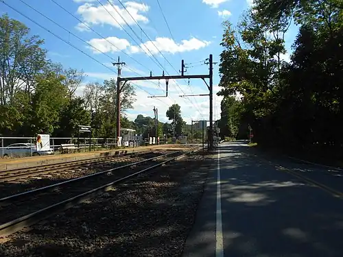 ![]() Mount Tabor station in September 2014 facing Morris Plains-bound. Station Road is visible to the right side. | |||||||||||||