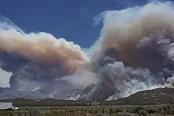 The Mountain Fire was a wildfire in July, 2013 in Mountain Center, Riverside County, California, about 100 miles east of Los Angeles. It burned primarily in the San Jacinto Mountains in the San Bernardino National Forest. It started on July 15, 2013 at 1:43 PM near the junction of Highway 243 and Highway 74. It burned for 16 days on steep slopes of timber and chaparral above Palm Springs. Heavy rainfall, up to 1.5 inches (3.8 cm), on July 21 helped bring the blaze under control.[2] It was fully contained on July 30, 2013.[3]