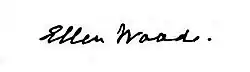 Price was born in Worcester, on 17 January 1814. In 1836 she married Henry Wood, who worked in the banking and shipping trade in Dauphiné in the south of France, where they lived for 20 years.[2] On the failure of Wood's business, the family (including four children) returned to England and settled in Upper Norwood near London, where Ellen Wood turned to writing. This supported the family. Henry Wood died in 1866. She wrote over 30 novels, many of which (especially East Lynne) enjoyed remarkable popularity. Among the best known are Danesbury House, Oswald Cray, Mrs. Halliburton's Troubles, The Channings, Lord Oakburn's Daughters and The Shadow of Ashlydyat. Her writing tone would be described as "conservative and Christian,"[3] occasionally expressing religious rhetoric.[4]