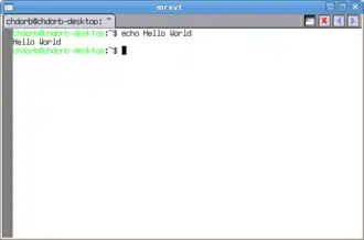 ![]() Hello world, in mrxvt | |