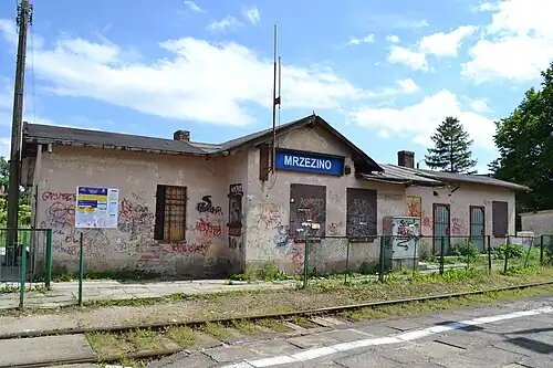 Mrzezino railway station is a railway station serving the village of Mrzezino, in the Pomeranian Voivodeship, Poland. The station opened on 15 December 1898 and is located on the Reda–Hel railway. The train services are operated by Przewozy Regionalne.
