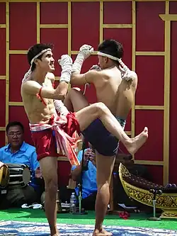Muay Thai is related to other martial art styles of the Indian cultural sphere such as Musti-yuddha,[7][8] Muay Chaiya, Muay Boran, Muay Lao, Lethwei, Benjang[9] and Tomoi.[10] A practitioner of Muay Thai is known as a Nak Muay. Western practitioners in Thailand are sometimes called Nak Muay Farang, meaning "foreign boxer".[11]