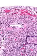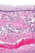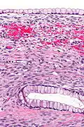 | Micrograph showing a mucinous cystadenoma of the ovary. H&E stain. | |