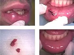 - ^ Sinha R, Sarkar S, Khaitan T, Kabiraj A, Maji A (2016). "Nonsurgical Management of Oral Mucocele by Intralesional Corticosteroid Therapy". International Journal of Dentistry. 2016: 2896748. doi:10.1155/2016/2896748. PMC 5086369. PMID 27822227.