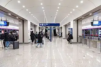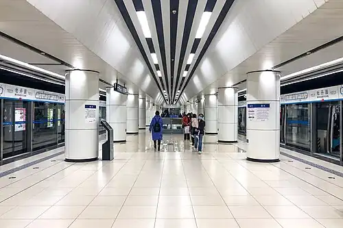 The station for Line 10 opened on July 19, 2008. It was closed for renovation (in order to interchange with Line 19) on April 10, 2021,[3] and reopened on June 18, 2021.[4] The station for Line 19 opened on December 31, 2021.