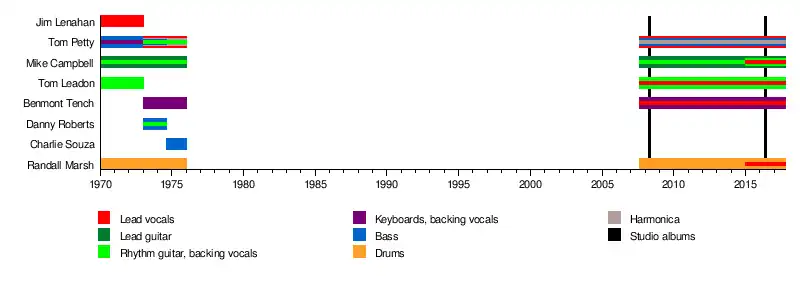 - Tom Petty – bass (1971–1974, 2007–2017; his death), backing vocals (1971–1973, 2007–2017), lead vocals, harmonica (1971–1975, 2007–2017), rhythm guitar (1973–1975), keyboards (1971–1973)