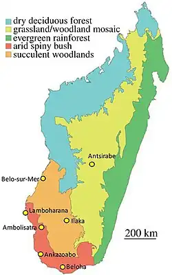 | Map of Madagascar showing where specimens have been found | |
