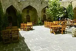 The caravanserai has a square shape and the construction of the building is in an ancient style.[4] There are many balconies around the courtyard. Now the Multani Caravanserai houses a restaurant of Azerbaijani cuisine.[3] In 2020, restoration works were commenced on the site with a completion time of 2022.[5]