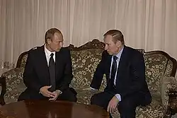 After Kuchma's re-election in 1999, he proclaimed that Ukraine would pursue a course of integration with the European Union, and the term "Multi-Vector Policy" was formally retired by the Ministry of Foreign Affairs in the summer of 2001.[13] Despite this, Kuchma's second term would be marked by Ukraine moving closer to Russia and distancing itself from the West. This change primarily began after the 2000 Cassette Scandal,[13] in which alleged recordings of Kuchma were revealed which purportedly indicated him ordering the killing of journalist Georgiy Gongadze and authorising the sale of the Kolchuga passive sensor to Ba'athist Iraq.[14]