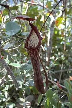 Strangler fig trees are common in the peat swamp area. Meanwhile, mixed dipterocarp forests is present up to 800 metres in altitude. Examples of trees found in this region are: Shorea, Durian, Garcinia, Calophyllum and Eugenia. Between 800 and 1,200 metres, lower montane forests emerged. Quercus subsericea dominated this region. Upper montane forests is found between 1,200 and 2,170 metres. Epiphytes is abundant in this region. The canopy is between 10 and 20 metres in height. The Upper montane forests can be divided into short facies, tall facies, and stunted summit facies. Small trees and shrubs such as Rhododendron and Vaccinium, and pitcher plants such as Nepenthes tentaculata and Nepenthes muluensis are endemic to Mount Mulu.[8]