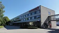 Fire station 2 (48°06′02″N 11°31′31″E / 48.10050°N 11.52520°E) was put into operation in the fall of 1967, after the old fire station 2 on Boschetsrieder Straße had become too small and could no longer meet the growing demands. The fire station is attached to a respiratory protection and a hoses repair shop as well as the fire department school. In particular, the inspection and maintenance of respiratory protective equipment, hoses, jump rescue equipment, fire department fabric and protective clothing is carried out by this fire station. The fire department school has its own fleet, an exercise hall and a fire simulation system[4] (gas-fired).