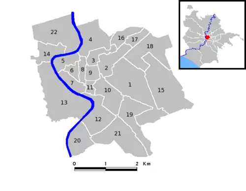 The area of the municipality occupies the central districts of the town, including the whole historic district enclosed by the Aurelian Walls and the Janiculum walls and crossed by the Tiber, which makes part of UNESCO's List of World Heritage Sites. The quarters built over the river in the late 19th century and the beginning of 20th century between Vatican Hill and Monte Mario (Prati, Trionfale, Della Vittoria) are also within its borders.