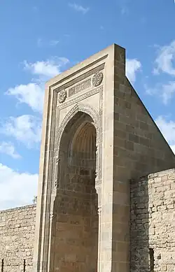 Murad's Gate is the only building of the 16th century on the territory of the Shirvanshahs’ Palace complex.[2] The Arabic inscription between the two medallions at the top of the portal reads: