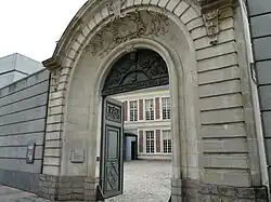The gate is adorned with sculpted elements typical of the decorative style from the end of the reign of Louis XIV and the Regency, opening onto a wide archway with vegetal motifs in bas-relief. This gate contrasts with the simplicity of the main building, which has three levels and alternates between brick and limestone, following the model of French classical architecture. Historically, the original entrance was through the spacious vestibule, which housed the grand staircase leading to the salons facing the garden.[5]