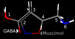- ^ Brehm L, Frydenvang K, Hansen LM, Norrby PO, Krogsgaard-Larsen P, Liljefors T (December 1997). "Structural features of muscimol, a potent GABAA receptor agonist, crystal structure and quantum chemicalab initio calculations". Structural Chemistry. 8 (6): 443–451. doi:10.1007/BF02311703. S2CID 93397543.