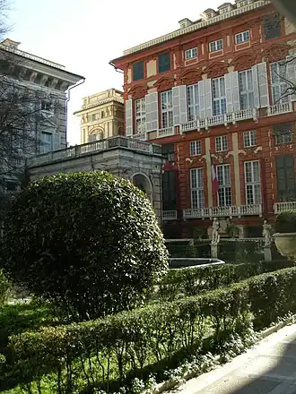 The Musei di Strada Nuova in the Italian city of Genoa comprise three museums which together form a single complex, housed in the Palazzo Rosso, the Palazzo Bianco and the Palazzo Tursi, all of which are located along the Via Garibaldi (formerly the Strada Nuova).[1] The Palazzo Tursi is also Genoa's city hall.