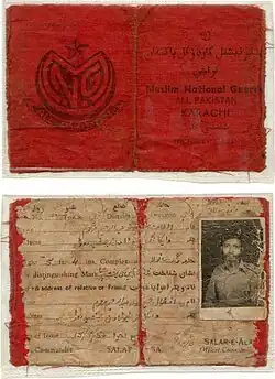 Muslim League National Guards,[2] or Muslim National Guards,[3] was the name of a quasi-paramilitary organization associated All-India Muslim League that took part in the Pakistan Movement. The organisation was active in the violence that led up to the partition of India and the violence that followed it. It was also a key instigator in the Kashmir conflict.