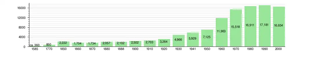 As of 2000, there were 6,189 people who were single and never married in the municipality. There were 8,470 married individuals, 1,099 widows or widowers and 896 individuals who are divorced.[10]
