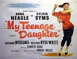 My Teenage Daughter (also known as Teenage Bad Girl) is a 1956 British drama film directed by Herbert Wilcox and starring Anna Neagle, Sylvia Syms and Norman Wooland.[2][3] The screenplay concerns a mother who tries to deal with her teenage daughter's descent into delinquency. It was intended as a British response to Rebel Without a Cause (1955). It was the last commercially successful film made by Wilcox.[4]