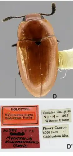 - ^ Pecci-Maddalena, Italo Salvatore de Castro; Lopes-Andrade, Cristiano; Skelley, Paul (2023-06-28). "Catalogue of Mycotretus Lacordaire, 1842 (Coleoptera: Erotylidae: Tritomini): an annotated, illustrated and historical approach". European Journal of Taxonomy. 876: 1–182. doi:10.5852/ejt.2023.876.2149. ISSN 2118-9773.