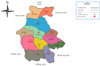 1. ^ Sadar subdivision of Mymensingh district