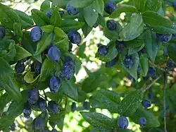 The fruit is a round berry containing several seeds, most commonly blue-black in colour. A variety with yellow-amber berries is also present. The seeds are dispersed by birds that eat the berries.
