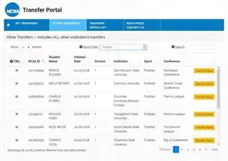 - ^ NCAA Transfer Portal User Guide (PDF). National Collegiate Athletic Association. October 2018.