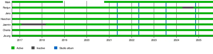 - ^ Mark left NCT Dream at the end of 2018 as a result of the group's previous admission-graduation system. Following the termination of this system, Mark rejoined the group at the end of 2020.
