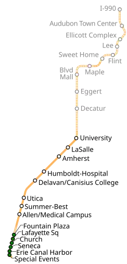 | Canalside | | Serves Buffalo–Exchange Street station (Amtrak), LECOM Harborcenter and Canalside. | ||||