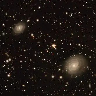 ![]() The spiral galaxy NGC 7042 (lower right) and NGC 7043 (upper left). | |