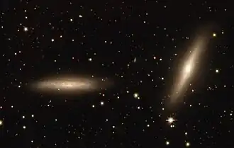 NGC 7332 and NGC 7339 form a dynamically isolated binary system (number 570 in the catalog of double galaxies compiled by Igor Karachentsev),[3] and are likely orbiting each other.[3] NGC 7332 is the brighter of the two galaxies.[3]