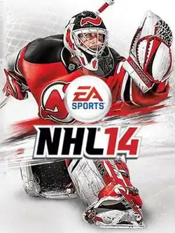 Like the NHL 13 cover, anybody could vote on the player(s) they wished to see on the cover of NHL 14. The vote started on April 22, 2013 with 60 NHL players (2 players per team) in a single-elimination voting with two players in each match-up, and was closed on June 2, 2013.[2][3] Devils goaltender Martin Brodeur and Blue Jackets goaltender Sergei Bobrovsky qualified for the final,[4] and Martin Brodeur was announced as the winner on June 28, 2013.[5] NHL 14 marked the first time since NHL 97 that a goaltender was featured on the official cover (John Vanbiesbrouck was on the cover that year), as well as the first goaltender on any official ice hockey video game cover since Marty Turco on 2K Sports' NHL 2K6. Jonas Hiller was featured on the cover of NHL 12, but only in PAL regions.