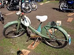 The NSU Quick 50 was a light motorcycle manufactured by NSU Motorenwerke AG. NSU started producing the Quick 50 in Neckarsulm, Germany in 1962. 9,323 Quick 50 motorcycles were built before NSU stopped manufacturing motorcycles in 1965.[1][2] Having produced bikes and automobiles since 1873, NSU was purchased by Volkswagen and was merged with Auto Union in 1969 to create Audi. To this day NSU bikes are sought as collectors' pieces, and for some still serve as functioning modes of transportation.