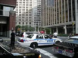 Highway Patrol: Officers patrol highways, parkways, and main thoroughfares throughout the City of New York. Auxiliary Highway Patrol officers wear the same uniform as regular Highway Patrol officers and patrol in regular officers RMPs in Auxiliary Police Highway Patrol RMPs with AUXILIARY decals on each side. All applicants to this unit are required to have a minimum of five years experience as a patrol officer with the NYPD Auxiliary Police, must be mature, and have exceptional discipline and service records. Officers will be required to attend an Advanced Vehicle Operation Course before they may operate a Highway Patrol Vehicle. Auxiliary Officers aren't allowed to perform Traffic Stops. See article: New York City Police Department Highway Patrol[20]