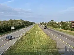 The mainline of the Thruway begins (in terms of exit numbers and mileposts) as a continuation of the Major Deegan Expressway, carrying I-87 northward into Westchester County from New York City at the border between Yonkers and the Bronx.[1] The first few exits serve various local streets and destinations in the city. At exit 4, I-87 connects to the Cross County Parkway, an east-west parkway providing access to the Saw Mill River, Bronx River, and Hutchinson River parkways, all of which run parallel to the Thruway through Yonkers. The Hutchinson River and Bronx River parkways leave to the northeast midway through Yonkers, while the Saw Mill and Sprain Brook parkways follow the Thruway out of the city. Exit 5 connects to Central Park Avenue (NY 100) which connects towards White Plains. After that, exit 6 connects to Tuckahoe Road, connecting towards Yonkers and Bronxville. The last free exit heading northbound is exit 6A; travel farther north requires a toll payment at the Yonkers toll gantry.