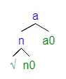 Within the tree structures, the word root combines with the functional category n0 to become a noun, then combine with the functional head a0 to form an adjective. Both nouns and adjectives contain the root-n0 combination, and it is the presence of a0 that results in the appearance of the attributive copula -na.[21]