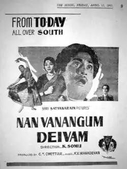 Naan Vanangum Deivam (transl. The deity which I worship) is a 1963 Indian Tamil language film, directed by K. Somu and produced by C. T. Chettiar. The film stars Sivaji Ganesan, Padmini, T. R. Ramachandran and V. Nagayya. It is based on the novel Frankenstein, written by Mary Shelley.[1] The film was released on 12 April 1963.[2]
