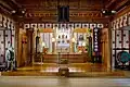 During the Keichō era (1596–1614), after the shrine's pavilions were rebuilt, the shrine suffered damage and new construction was started. The current honden was completed in 1801 and the haiden was completed in 1852.