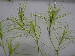 Najas graminea, also known as ricefield water-nymph[2] is a species of aquatic plant found in freshwater habitats, especially still or slow-moving waters, like ponds and rice fields. It grows to a maximum length of 30 cm. The flowers are monoecious. The flowering season is from July to September.[3][4][5][6]