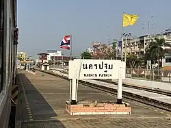 Nakhon Pathom railway station is a railway station located in Phra Pathom Chedi subdistrict, Mueang Nakhon Pathom district, and is located 48.126 km (29.9 mi) from Thon Buri railway station.[1] It is a class 1 railway station and is the main railway station of Nakhon Pathom province. The station is not far from Phra Pathom Chedi which is a famous landmark of the province. The station opened in June 1903 as part of the first phase of the Southern Line construction between Thon Buri Station to Phetchaburi Station and was originally named "Phra Pathom" station.