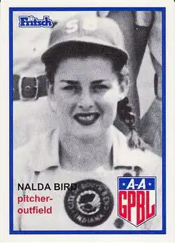 Nalda Marie Bird [Phillips] (February 11, 1927 – September 15, 2004) was a starting pitcher and outfielder who played in the All-American Girls Professional Baseball League during the 1945 season. Listed at 5 ft 1 in (1.55 m), 115 lb., Bird batted right-handed and threw left-handed. She was nicknamed "Birdie". Sometimes she is credited as Nelda Bird.[1][2]