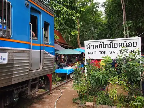 Nam Tok Sai Yok Noi railway halt is a railway halt located in a small town of Nam Tok Sai Yok Noi in Sai Yok District, Kanchanaburi Province. The station is built to promote tourism only where the nearest popular destination is the Sai Yok Noi Waterfall.[2] Most trains terminate at Nam Tok railway station located 1.4 km away from the station.
