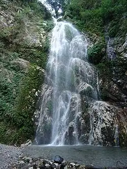 Namaste Falls (Nepali: नमस्ते झरना) is located in Bhedetar village development committee of Dhankuta district. It is popular among domestic tourists. The falls are about 80 meters high.[1] Domestic tourists from Jhapa, Dhankuta, Morang and Sunsari visit this falls in large. One can see a rainbow-like, seven-colour formation while standing close to the waterfall. It is in the shape of Namasthe. The falls are also frequently visited by researchers.[2]