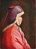 A nambawi (Korean: 남바위) is a type of traditional Korean winter hat worn by both men and women during the Joseon period for protection against the cold. The other names for it are pungdengi and nani (literally warming ears). The nambawi is also called ieom (literally "covering ears") which was worn in the early Joseon period, although it was derived from the cap. It was originally worn by the upper class as a daily hat, but spread to commoners and women in the later period. It was usually worn by middle-aged women and old people as well as by government officers who put it under the samo (사모, official hat).[1][2][3]
