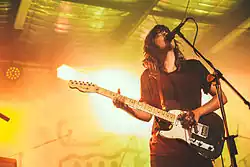 Among the guitars Barnett has used for performance and recording are a Harmony H59 and a number of Fenders, including Jaguars, Stratocasters, and Telecasters, which she strings with Ernie Ball Power Slinky strings in the 0.011–0.048 gauge. She plays through Fender Hot Rod Deville and Fender Deluxe amplifiers, with effects pedals including a Fulltone OCD overdrive pedal, a "cheap delay pedal", and a chorus pedal.[62][63]