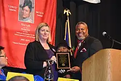 After a mass shooting occurred on August 4, 2019, she and Ohio Senator Sherrod Brown accompanied President Donald Trump on a visit with survivors at the local hospital.[29] Ten people were killed, including the perpetrator; and twenty-seven were injured.[30] She joined over 200 mayors in encouraging Congress to act on gun control legislation that is already before them. The group included Dee Margo, the mayor of El Paso, Texas, where a shooting occurred the day before.[31] According to Dayton NAACP President Derrick Foward, Whaley received the Dayton Unit NAACP Community Service Award for the leadership she provided in guiding the City of Dayton through the violent and horrific mass shooting that took place in the Historic Oregon District.