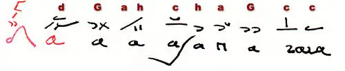 :νη πα [βου δίεσις] γα, γα δι κε [ζω ὕφεσις−6], [ζω ὕφεσις−6] νη πα [βου ὕφεσις−6].